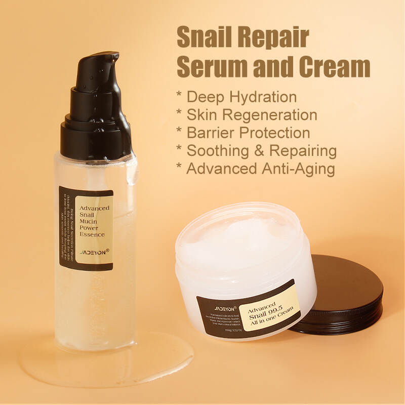 This Private Label Advanced Snail Mucin Skincare Kit offers nourishing face serum and cream, featuring moisturizing, repairing, and smoothing benefits. It supports private label customization with professional design services and is made from safe, environmentally-friendly materials ensured through strict quality control.